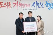 한국시사경제 사회팀 | 군포시는 지난 24일 대구에 본사를 둔 중견기업인 ㈜티에이치엔으로부터 후원금 1,000만원을 기탁받았다고 밝혔다. 기탁식에는 하은호 군포시장, ㈜티에이치엔의 한영덕 경영지원본부장, 경기사회복지공동모금회 강영진 사업팀장 등이 참석하여 담소를 나눴다. 이날 기탁식에 참석한 한영덕 경영지원본부장은 “자동차부품(전기배선장치류) 제조업체인 티에이치엔의 연구소가 부곡동 첨단산업단지에 위치하고 있어 군포와 인연이 큰 기업으로 이번 후원을 통하여 열악한 환경에 놓인 취약계층을 지원함으로써 지속가능한 사회를 만들어 가는 기업이 되도록 노력하겠다”고 말했다. 하은호 군포시장은 “지역사회의 어려운 이웃을 위해 나눔에 앞장서는 ㈜ 티에이치엔에 감사드리며, 앞으로도 지역과 함께 발전·성장하는 기업이 되길 진심으로 바란다”고 전했다. 이번 후원금은 사회복지공동모금회를 통해 관내 취약계층에 전달할 예정이다.