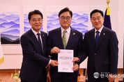 한국시사경제 권충현 기자 | 전라남도의회 김태균 의장은 강문성 기획행정위원장과 함께 9월 11일 국회를 방문해 우원식 국회의장을 접견하고, 청년 인구 유출과 지역경제 침체, 지방의원 사직기한 차별 문제 해소 등 현안 해결을 위한 제도 개선과 국회 차원의 지원을 강력히 요청했다. 이날 면담에서는 ▲청년특구 조성 특별법 제정 ▲「공직선거법」 지방의원 사직기한 차별 해소 ▲고향사랑기부제 제도 개선 등 3대 핵심 의제가 집중적으로 논의됐다. 김 의장은 먼저 “청년이 떠나는 지역에는 미래가 없다”며 “창업·일자리·주거를 종합적으로 지원할 수 있는 특별법 제정이 절실하다”고 건의했다. 지난 6월, 김 의장이 대표발의해 전국 최초로 「전라남도 청년특화구역 조성 및 지원 조례」가 제정됐지만, 열악한 지방재정만으로는 청년 창업과 정착을 충분히 지원하기 어렵다는 점을 강조했다. 이어, 김 의장은 지방의원 사직기한 차별 문제 해결을 위해 「공직선거법」 개정을 제안했다. 현행 제53조에 따르면, 지방의원이나 지자체장이 타 지자체 의원 또는 단체장 선거에 출마할 경우 선거일 전 30일까지 반드시 사직해야 한다.