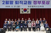 한국시사경제 대전취재본부 | 대전시교육청은 2월 27일, 대전시교육청 대강당에서 퇴직교원 정부포상 대상자와 가족 등이 참석한 가운데 ‘2026년 2월말 퇴직교원 정부포상 전수식’을 개최했다고 밝혔다. 이번 포상 수상자들은 오랜 세월 교직에 몸담으며 대전교육과 국가 교육 발전에 기여한 공로를 인정받았다. 훈격별 수상자는 황조근정훈장 7명, 홍조근정훈장 29명, 녹조근정훈장 19명, 옥조근정훈장 7명, 근정포장 10명, 대통령표창 3명, 교육부장관 표창 5명 등 총 80명이다. 퇴직교원을 대표해 소회를 밝힌 대전문지중학교 박미혜 교장은 정든 교정을 떠나는 아쉬움과 함께 그동안 뜻을 같이한 동료 교육 가족들에게 깊은 감사의 마음을 전했다. 설동호 대전광역시교육감은 “교육에 대한 사랑과 열정으로 국가와 대전교육 발전을 위해 헌신한 선생님들께 존경과 축하의 마음을 전한다”라며 “대전교육가족은 언제나 선생님들의 노고를 기억하고 앞날을 응원할 것”이라고 밝혔다.