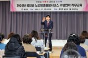 한국시사경제 문화팀 | 옹진군은 지난 27일부터 3월 6일까지 군청 6층 중회의실에서 노인맞춤돌봄서비스 수행인력의 전문성 강화를 위한 '2026년 노인맞춤돌봄서비스 사업 직무교육'을 2회에 걸쳐 실시한다고 밝혔다. 이번 교육은 종사자의 직무이해도를 높이고 심리적 부담을 완화함으로써, 도서지역 어른신들에게 보다 안정적이고 지속적인 돌봄서비스를 제공하기 위해 마련됐다. 특히, 직무교육으로 인한 돌봄 공백을 최소화하기 위해 2회 분반으로 운영하며, 회차별 약 30명씩 참여하도록 조정했다. 교육에는 수행인력 60명이 참여하며, 이들은 현재 관내 768명의 돌봄대상 어르신에게 안전 확인, 일상생활지원, 정서 지원 등 맞춤형 서비스를 제공하고 있다. 교육은 대면 집합교육 방식으로 진행되며, 주요 내용은 ▲2026년 노인맞춤돌봄서비스 운영지침 및 제도의 이해 ▲지역사회 통합돌봄 정책과의 연계 및 ‘퇴원 후 단기집중서비스’사업 안내 ▲특화서비스 추진에 따른 돌봄대상자 이해 및 사례관리 방향 등 실무 중심 교육 ▲노인학대 예방교육 등 현장 대응 역량 강화를 위한 과정으로 구성됐다. 문경복 군수는“도서지역 특성상