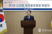 한국시사경제 권충언 기자 | 김경협 재외동포청장은 10일 “재외동포 사회와의 연결을 넘어 연대를 강화하겠다”고 밝혔다. 김 신임 청장은 이날 인천 연수구에 있는 본청 대강당에서 열린 취임식에서 “동포사회가 가진 경험과 지식, 글로벌 네트워크를 우리 사회와 적극적으로 연결하겠다”며 “우리 동포들의 민간외교 활동을 정부가 뒷받침하고, 각 분야 전문가들이 모국과 협업할 수 있는 연대 플랫폼을 구축하겠다”고 말했다. 김 청장은 이어 재외동포의 정체성 함양을 위해 적극 노력하겠다고 천명하면서 “한글학교에 대한 지원을 대폭 확충해 차세대 동포를 위한 한국어 교육과정을 체계화하겠다”고 강조했다. 또 국가 위상에 걸맞게 재외동포에 대한 수요자 맞춤형 지원을 확대하는가 하면 다문화가정 자녀와 입양동포, 역사적 특수 동포 등 다양한 배경을 가진분들이 한민족의 일원으로써 소속감을 느낄 수 있도록 세심하게 정책을 마련하겠다“고 했다. 아울러 증가하는 국내 체류 동포에 대한 지원 강화와 함께 해외동포 청년의 국내 유치와 정착지원을 통해 세계 곳곳의 동포 역량을 적극적으로 활용해 대한민국의 미래 성장동력 확보에 기여하겠다고