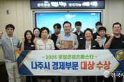 한국시사경제 전남취재본부 | 전라남도 나주시가 지역의 정체성과 특화 정책을 기반으로 한 성과를 인정받아 ‘2025 로컬콘텐츠페스타(Create The Local)’에서 경제부문 대상을 수상하며 로컬콘텐츠 선도 도시로 자리매김했다. 나주시에 따르면 시상식은 11일 광주KBC 본사에서 열렸으며 경제, 문화, 관광 등 8개 부문 수상 지자체 관계자들이 참석한 가운데 진행됐다. ‘로컬콘텐츠페스타’는 매년 전국 지자체가 발굴 및 육성한 우수 콘텐츠를 공유하고 지역경제 활성화 전략을 모색하는 행사로 지난 7월 25일부터 27일까지 3일간 부산 벡스코에서 개최됐다. 올해는 전국 광역, 기초 지자체와 기업 등 90개 팀이 참가해 각 지역의 대표 콘텐츠와 브랜드를 선보였다. 나주시는 전남 시 단위 최초 민생경제회복지원금 지급(1인당 10만 원), 민생안정특별대책(308억 원), 농수산식품 수출 확대(8개국, 3970만 달러), 청년 무상 임대주택(135호 공급), 청소년 100원 버스 등 시민 생활 안정과 지역경제 회복을 위한 다양한 정책 성과를 인정받아 수상의 영예를 안았다. 이번 수상은 나주시가 지