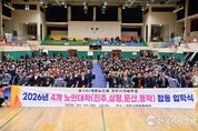 한국시사경제 윤광희 기자 | (사)대한노인회 진주시지회장(회장 최동권)은 3월 3일 진주시생활체육관에서 부설 노인대학 4개소 합동 입학식을 성황리에 개최했다. 이번 입학식에는 진주·상평·문산·동락 노인대학 입학생 600여 명이 참석해 새로운 배움의 시작을 함께하며 설렘과 기대 속에 뜻깊은 시간을 가졌다. 행사는 식전행사를 시작으로 국민의례, 노인강령 낭독, 입학생 선서, 학생대표 인사, 노인대학장 인사말, 내빈 축사, 지회장 격려사 순으로 진행됐다. 참석자들은 어르신들의 새로운 도전을 응원하며 따뜻한 박수를 보냈다. 이날 행사에는 조규일 진주시장과 진주시의회 관계자, 지역 기관·단체 관계자들이 참석해 입학생들의 새로운 출발을 축하했다. 축사에서는 어르신들의 건강과 행복, 배움의 기쁨을 응원하는 메시지가 전해졌다. 대한노인회 진주시지회장 최동권은 “노인대학은 어르신들이 서로 소 통하고 삶의 활력을 얻는 소중한 배움의 공간이라며 앞으로도 교양·건강·취미·여가 등 다양한 교육 프로그램을 통해 어르신들의 사회참여 확대와 행복한 노후를 위해 힘쓰겠다”고 밝혔다.