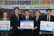 한국시사경제 전남취재본부 | (재)2026여수세계섬박람회조직위원회는 4월 2일 전남도청 VIP실에서 탑솔라㈜와 ‘2026여수세계섬박람회 입장권 구매약정식’을 개최했다고 밝혔다. 이날 약정식에는 유병진 탑솔라㈜ 대표이사, 황기연 전라남도지사 권한대행과 정현구 여수시장 권한대행, 김종기 조직위 사무총장 등이 참석했으며, 탑솔라㈜는 2천만 원 상당의 입장권을 구매하기로 약정했다. 전남에 본점을 둔 탑솔라㈜는 태양광 발전 사업을 기반으로 신재생에너지 분야에서 성장하고 있는 기업으로, 친환경 에너지 확산과 지역사회 발전에 기여하고 있다. 현재 전남개발공사와 공동으로 무안군·영광군에 BESS 160MW를 추진 중이며, 태양광발전 누적 시공용량 1.6GW, 에너지저장장치 1.1GWh 시공 등 대한민국 대표 신재생 에너지기업으로 자리매김했다. 유병진 대표이사는 “2026여수세계섬박람회가 성공적으로 개최되기를 바라는 마음으로 이번 약정에 참여하게 됐다”며 “앞으로도 지역사회와 상생하며 박람회 성공을 위해 지속적인 관심과 지원을 이어가겠다”고 말했다. 김종기 사무총장은 “기업의 참여는 박람회 성공 개최를