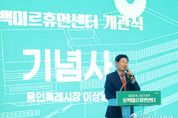한국시사경제 사회팀 | 용인특례시는 2일 오후 기흥구 동백동 지역 주민들을 위한 ‘동백미르휴먼센터’ 개관식을 개최했다. 이곳에는 수영장 등 생활체육 시설, 청소년 문화활동 시설, 어르신 복지 시설, 장애인 돌봄 시설, 평생학습 시설 등이 갖춰졌다. 이상일 시장은 개관식에서 “2008년 부지 매입 후 시설 건립까지 18년이나 걸렸는데, 오랜 세월을 기다려 주신 시민들께 감사 인사를 드리면서 축하의 뜻도 전한다”고 말했다. 이 시장은 "기다림이 컸던 만큼 동백미르휴먼센터를 잘 짓기 위해 노력했다"며 "이곳은 문화·체육·교육·복지 등이 함께 하는 전 세대 맞춤형 복합시설로 좋은 공간과 설비를 잘 갖추고 있으니 자주 마음껏 이용해 주시기 바란다"고 했다. 이 시장은 "이용하시면서 개선할 것 등에 대한 의견도 말씀해 주시면 적극 검토하겠다"며 "시는 이처럼 훌륭한 시설이 다른 여러 지역에도 건립될 수 있도록 부지와 예산을 확보하는 노력을 기울이겠다"고 했다. 이 시장은 이날 ‘동백미르휴먼센터’가 성공적으로 개관할 수 있도록 기여한 인사들에게 표창장을 수여하고, 입주한 시설 관계자에게 ‘함께 만드