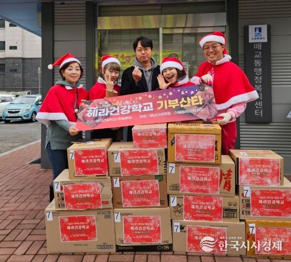 한국시사경제 사회팀 | 지난 6일 수원 강남여성병원 어울림 헤라봉사회의 기부산타들이 수원시 팔달구 매교동에 연말을 맞이하여 선물꾸러미(라면, 과자류 등) 14상자(700,000원 상당)를 전달했다.