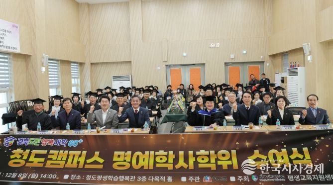 한국시사경제 권충언 기자 | 청도군은 12월 8일 월요일 청도평생학습행복관 다목적강당에서 수강생과 내빈 등 60여 명이 참석한 가운데『2025 경북도민행복대학 청도군 캠퍼스 명예학위 수여식』을 성황리에 개최했다.