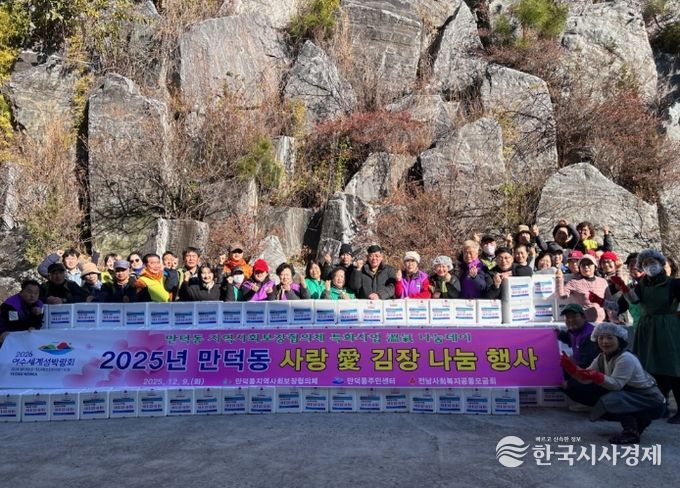 만덕동지역사회보장협의체 기금으로 마련된 행사는 덕충교회가 장소 제공, 여수참조은신협이 봉사자들을 위한 수육과 밥 지원, 황자영 주민자치회장이 어묵 준비, ㈜오토디앤디가 김치통 220개 후원 등을 통해 따뜻한 손길을 보탰으며 김장은 취약계층 200가구와 경로당·복지시설 19곳에 전달됐다.