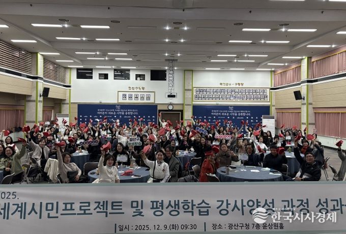 한국시사경제 광주취재본부 | 광주 광산구가 최근 구청 7층 윤상원홀에서 ‘2025 세계시민 프로젝트 및 평생학습 강사양성과정 성과공유회’를 개최했다.
