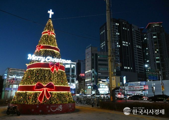 한국시사경제 경기취재본부 | 연말을 맞은 시흥 곳곳이 크리스마스트리 조명으로 환하게 빛나며, 겨울밤의 따뜻한 분위기를 더하고 있다.