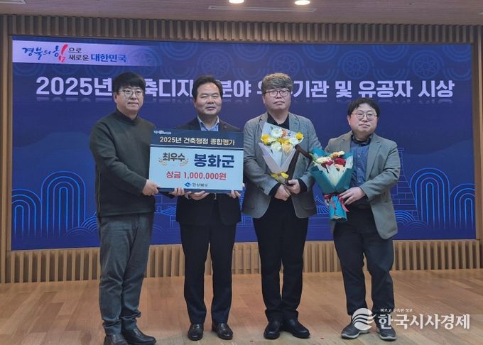 한국시사경제 노승선 기자 | 봉화군은 12월 16일 경상북도 주관으로 열린‘2025 경상북도 건축디자인분야 우수기관 시상식’에서 건축행정 업무평가 최우수 기관상을 수상했다.