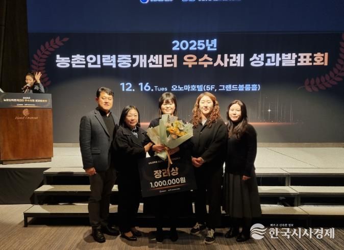 한국시사경제 사회팀 | 강화군은 지난 16일 농림축산식품부 주관으로 대전시 오노마호텔에서 열린 ‘2025년 농촌인력중개센터 우수사례 성과발표회’에서 강화남부농협이 장려상을 수상했다고 밝혔다.