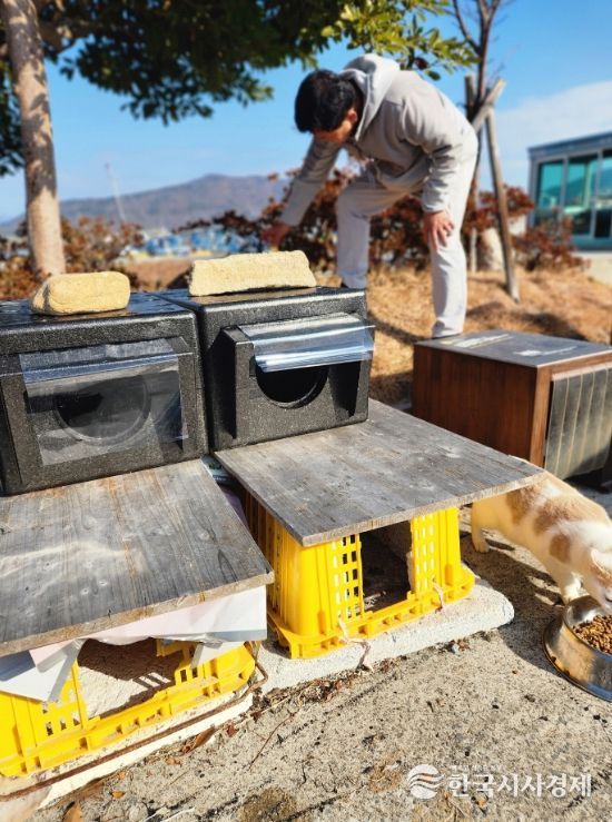 한국시사경제 경남취재본부 | 통영시는 지난 16일 통영 고양이섬 용호도에 겨울철 한파로부터 길고양이를 보호하고, 고양이와 주민이 공존하는 환경을 조성하기 위해 고양이섬 추진위원회(위원장 정경섭)와 마을주민들이 협업해‘고양이 겨울집’을 설치했다.