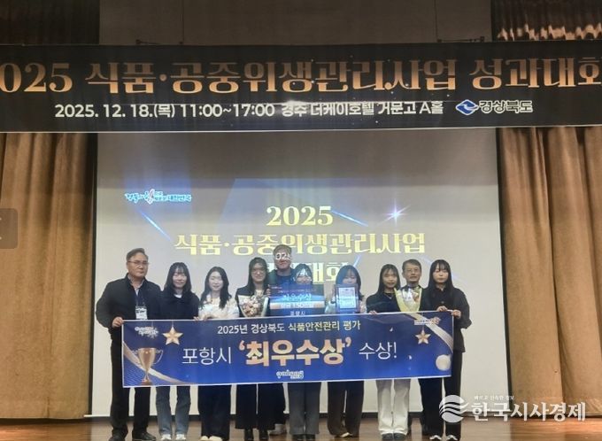 한국시사경제 노승선 기자 | 포항시는 18일 더케이호텔경주에서 열린 ‘2025년 경상북도 식품·공중위생 관리사업 성과대회’에서 식품안전 부문 최우수상을 수상했다.
