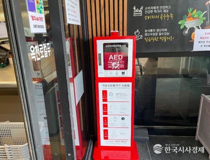 한국시사경제 오영주 기자 | 옥천군은 최근 옥천로컬푸드직매장 내 고객 안전 강화를 위해 ‘자동심장충격기(AED)’를 신규 설치 했다.
