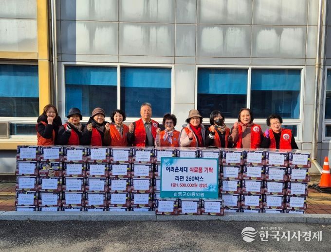 한국시사경제 경남취재본부 | 하동군아동위원협의회(회장 정종수)가 연말 나눔 활동의 일환으로 관내 취약계층 아동 10세대에 라면 260상자(컵라면, 일반·짜장라면 세트)를 전달했다.