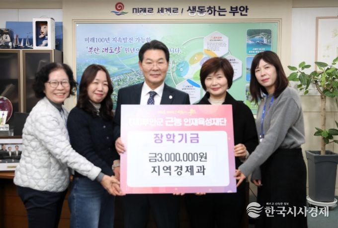 한국시사경제 김숙영 기자 | 부안군근농인재육성재단은 지난 24일 부안군 지역경제과(과장 김연희)가 공공폐수처리시설 운영관리 실태평가에서 우수기관으로 선정돼 받은 포상금 중 일부인 300만원을 지역인재육성장학금으로 기탁했다고 밝혔다.