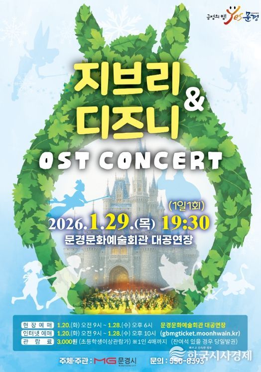 한국시사경제 이정이 기자 | 문경문화예술회관에서는 신년 겨울 방학을 맞아 인기 애니메이션 대표곡들을 들려주는 지브리 ·디즈니 OST 콘서트 공연을 1월 29일 19:30 (1일 1회)에 문경문화예술회관 대공연장에서 개최한다.