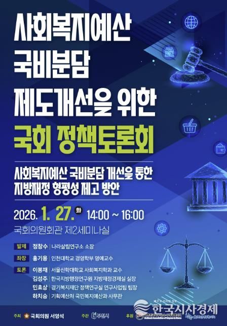 아울러 사회복지예산 국비분담 제도의 현황과 과제를 짚고, 중앙정부와 지방정부 간 재정 책임을 합리적으로 조정할 수 있는 제도개선 방향에 관해 전문가 발제와 종합 토론도 예정돼 있다.
