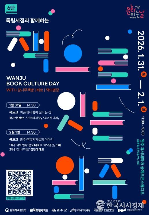 한국시사경제 김숙영 기자 | 완주문화재단은 오는 1월 31일부터 2월 1일까지 이틀간 완주 휴시네마와 공예오픈스튜디오에서 '문화가 있는 날 6탄 – 책으로 잇는 완주'를 개최한다.