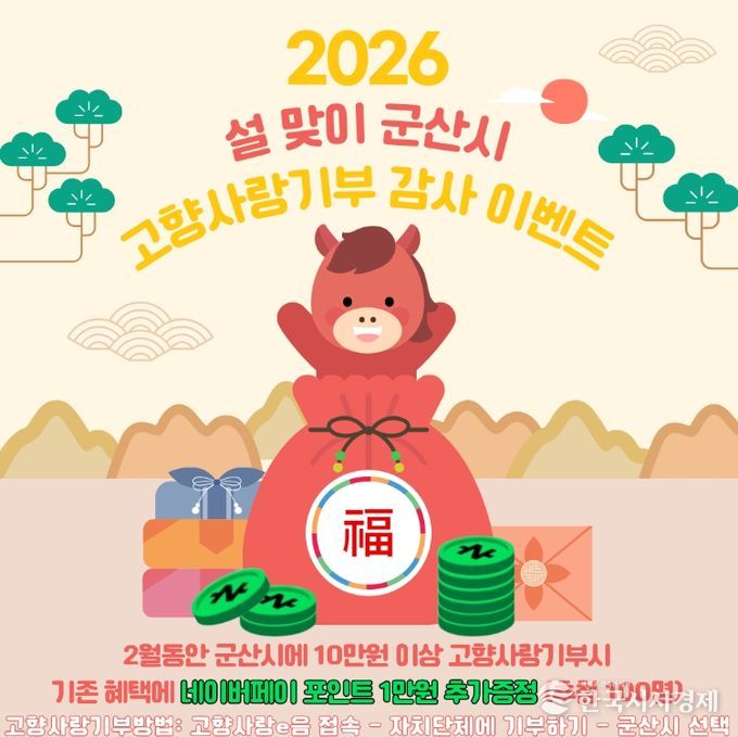 한국시사경제 전북취재본부 | 군산시가 민족 대명절인 설을 맞아 고향사랑기부제 활성화와 기부 문화 확산을 위해 2월 한 달간 ‘설맞이 고향사랑기부제 특별 이벤트’를 진행한다.