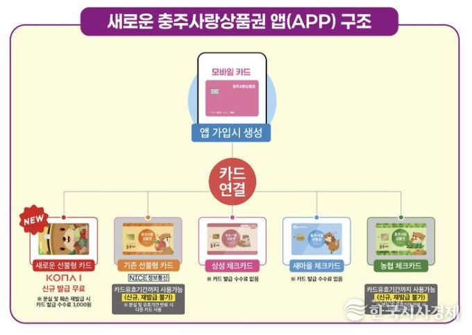 이번 개편으로 선불형 카드는 ‘충주씨’ 캐릭터를 활용한 신규 디자인을 적용하고, 모바일 카드를 통한 충전과 QR결제, 교통카드 기능도 새롭게 추가됐다.