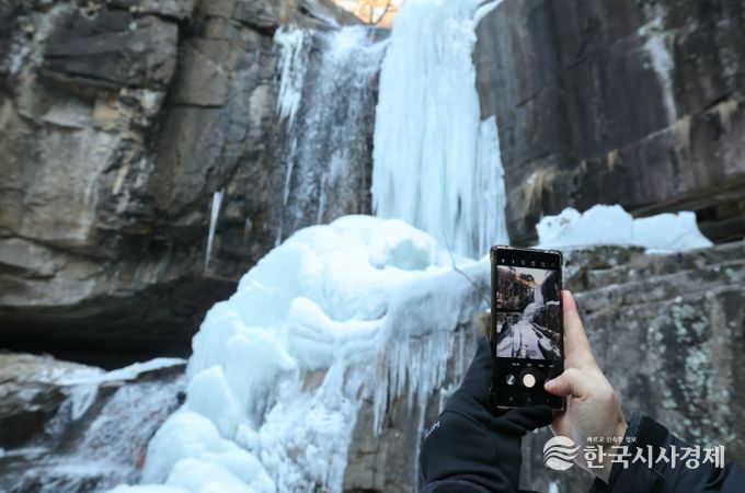 한국시사경제 충북취재본부 | 충북 괴산군 조령산 자락에 위치한 수옥폭포가 연일 이어진 강추위 속에서 거대한 빙폭과 고드름으로 뒤덮이며 한겨울에만 볼 수 있는 장관을 연출하고 있다.