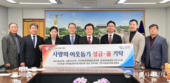 한국시사경제 윤광희 기자 | 진주시복지재단(이사장 이성갑)은 30일 진주시청 기업인의 방에서 지역사회 기업·기관·단체의 어려운 이웃돕기 성금품 기탁식을 가졌다.