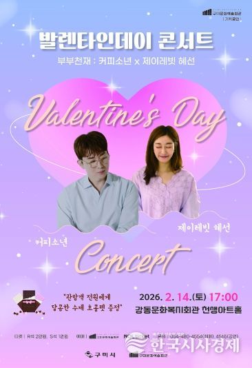 한국시사경제 경북취재본부 | 구미시는 오는 2월 14일 오후 5시, 강동문화복지회관 천생아트홀에서 발렌타인데이 콘서트〈부부천재 : 커피소년 x 제이레빗 혜선〉을 개최한다.