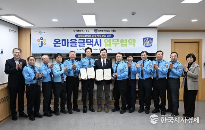 한국시사경제 대전취재본부 | 대전 중구는 11일 대전중부모범운전자회(회장 서보원)와 업무협약을 체결하고, 거동이 불편한 통합돌봄 대상자의 이동권 보장을 위한 ‘온마을콜택시’ 사업을 본격 추진한다고 밝혔다.