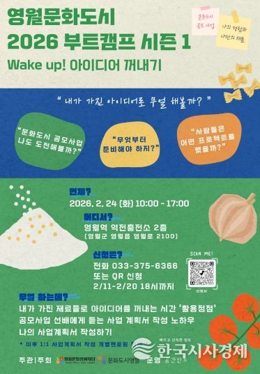 한국시사경제 권충언 기자 | (재)영월문화관광재단 문화도시센터는 오는 2월 24일 영월역 문화충전소에서 지역민의 창의적인 로컬 아이디어를 발굴하고 실질적인 사업계획서로 발전시키기 위한 ‘영월 로컬 아이디어 구체화 부트캠프 시즌 1’을 개최한다.