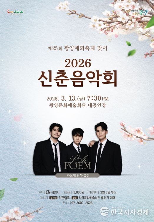 한국시사경제 권충언 기자 | 광양시는 오는 3월 13일 오후 7시 30분 광양문화예술회관 대공연장에서 제25회 광양매화축제의 시작을 알리는 '2026 신춘음악회'를 개최한다.
