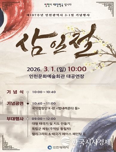 한국시사경제 문화팀 | 인천광역시는 3월 1일 오전 10시, 인천문화예술회관 대공연장에서 제107주년 3·1절 기념행사를 개최했다고 밝혔다.