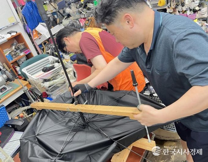 운영 시간은 매주 월~수요일(공휴일 휴무) 오전 9시 30분부터 오후 3시 30분까지다. 생활 우산을 대상으로 1인당 2개까지 수리할 수 있다. 골프우산·수입 우산·고급 양산 등 특정 부품이 필요한 우산은 수리하지 않는다.
