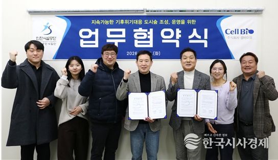 한국시사경제 사회팀 | 인천시설공단 청라공원사업단이 지난 10일, 한국서부발전 사내벤처 ㈜셀바이오(대표이사 변형완)와 함께 업무협약을 체결하고 민관 협력을 통한 도시숲 조성과 공원 관리 효율화에 나선다.