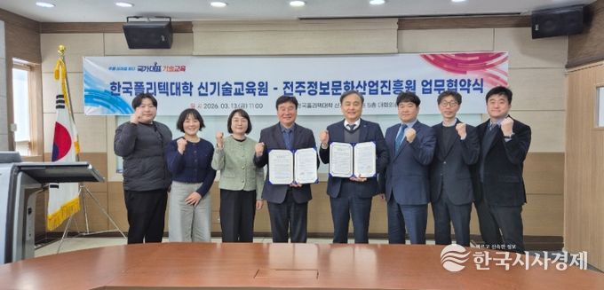 한국시사경제 전북취재본부 | 전주정보문화산업진흥원은 13일 한국폴리텍대학 신기술교육원과 가상융합기술 기반 피지컬AI 실증 및 전문 기술 인재 양성 협력을 위한 업무협약을 체결했다.