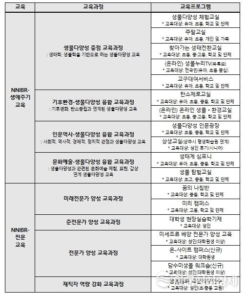 전문 교육은 ‘꿈의 나침반(자유학기제)’, ‘미리 캠퍼스(고교학점제)’ 등 진로 체험 과정과 ‘생물특화 교원직무연수’와 같은 재직자 역량 강화 프로그램을 포함해 전문가 양성과 실무형 경험 제공에 초점을 맞췄다.