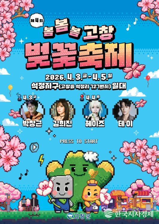 한국시사경제 김숙영 기자 | 고창군이 오는 4월3~5일(3일간) 고창석정온천지구 일원에서 ‘제4회 고창 벚꽃축제’를 개최한다.