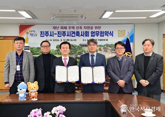한국시사경제 윤광희 기자 | 진주시는 재난으로 주택 피해를 본 시민들의 신속한 주거 안정과 일상 회복을 돕기 위해 진주시건축사회와 지난 12일 진주시청에서 '재난 피해 주택 신축 지원을 위한 업무협약(MOU)'을 체결했다.