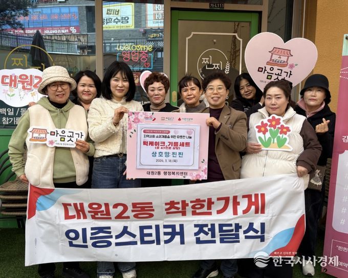 한국시사경제 권충현 기자 | 오산시 대원2동 행정복지센터는 지역사회 나눔 문화 확산을 위해 ‘찐찐’을 대원2동 착한가게 12호점으로 지정하고, 지난 18일 착한가게 인증스티커 전달식을 진행했다고 밝혔다.