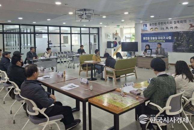 한국시사경제 사회팀 | 수원시 장안구 율천동 주민자치회와 성균관대학교 학생들이 지난 24일, ‘율천동 오솔길 꾸미기 사업’을 위한 회의를 개최했다.