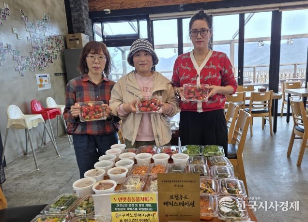 한국시사경제 문화팀 | 완주군 구이노인복지센터는 구이 모악산 정거장에 위치한 ‘완주로컬푸드협동조합 농가 레스토랑 행복정거장’에서 반찬을 후원받아 노인맞춤돌봄서비스 대상자 중 식생활 지원이 필요한 어르신들에게 전달했다.