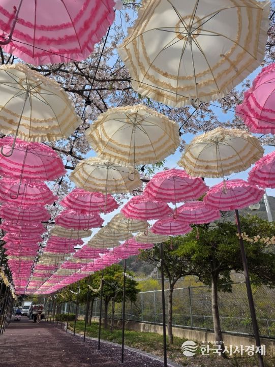 만개한 벚꽃 터널 아래 설치된 양산들은 축제장 특유의 화사한 분위기와 어우러져 시각적인 즐거움을 더했으며, 보행로를 따라 이색적인 분위기를 조성해 축제장을 찾은 시민들의 눈길을 끌었다.
