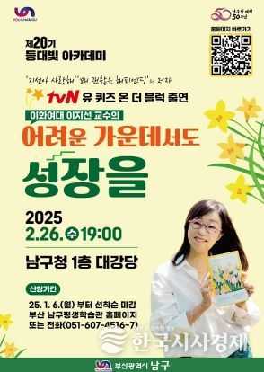 한국시사경제 부산취재본부 | 부산 남구는 오는 2월 26일, 남구청 1층 대강당에서 이화여대 이지선 교수를 초청하여 구민을 대상으로 하는 제20기 등대빛 아카데미 첫 강의를 개최할 예정이다.
