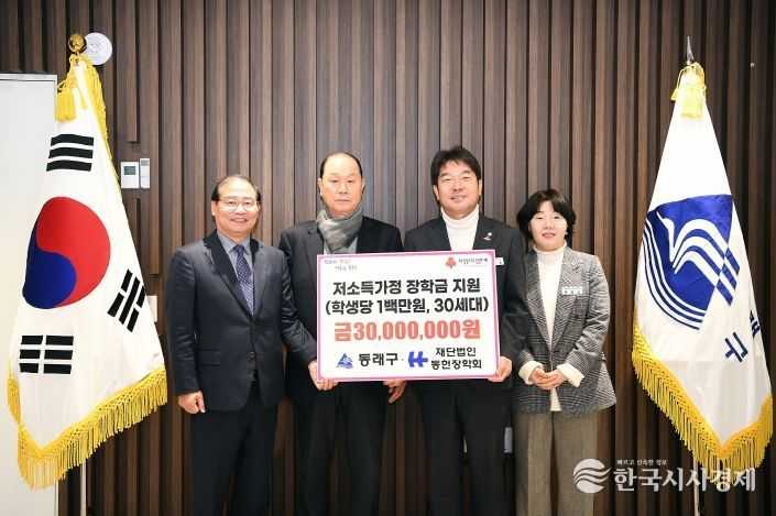 한편, 이날 전달받은 장학금은 동래구 저소득 중고등학생과 청소년 30명에게 100만 원씩 지원됐다.