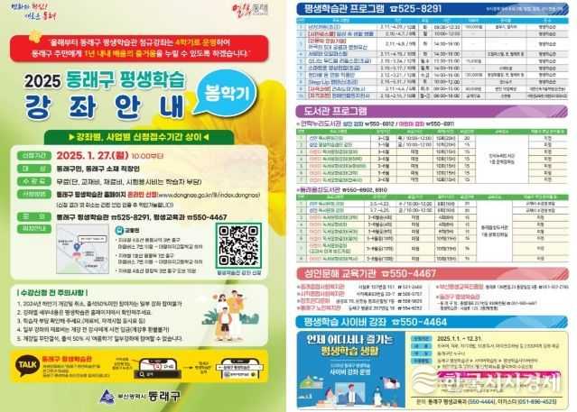 한국시사경제 부산취재본부 | 부산 동래구는 오는 2월부터 5월까지'평생학습관 봄학기'강좌를 운영한다고 밝혔다.