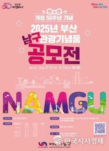 한국시사경제 부산취재본부 | 부산 남구에서는 개청 50주년을 기념하여 지역적 특색과 상징성을 담은 우수한 관광기념품을 발굴하고자『개청 50주년 기념, 2025년 부산 남구 관광기념품 공모전』을 개최한다.