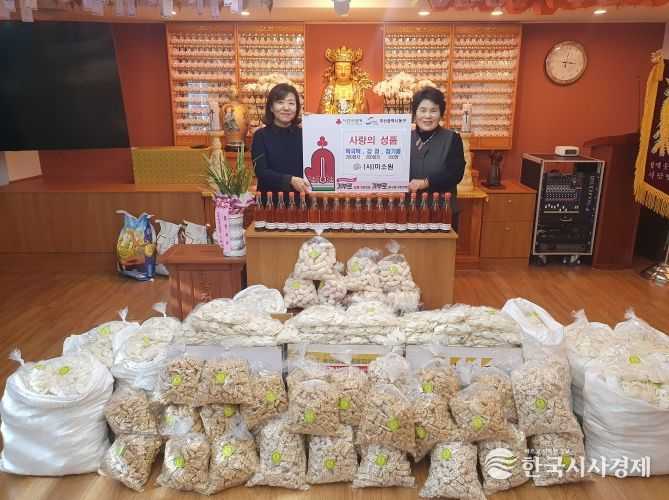 한국시사경제 부산취재본부 | (사)미소원(이사장 장유정)은 지난 23일 부산 동구(구청장 김진홍)에 설맞이 사랑의 성품으로 떡국떡 200봉지, 강정 200봉지, 참기름 100병을 기탁했다.