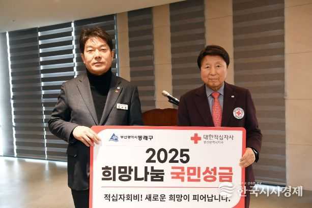 한국시사경제 부산취재본부 | 부산 동래구는 지난 23일 대한적십자사 부산지사(대표 서정의)에 2025년 적십자 특별회비 250만 원을 전달했다고 밝혔다.