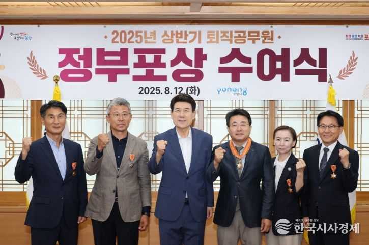 한국시사경제 한장선 객원기자 | 포항시는 12일 시청 대외협력실에서 ‘2025년 상반기 퇴직자에 대한 정부포상 수여식’을 열고, 장기간 시정 발전과 국가에 기여한 퇴직 공무원들의 공로를 기렸다.